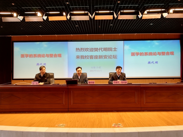 11月26日上午,应学校邀请,中国工程院副院长、我校客座教授樊代明院士第四次做客新安论坛,作了题为“医学的系统论与整合观”的专题讲座。学校校长彭代银主持报告会,学校党委委员、第一附属医院党委书记侯勇及相关院部师生近400人聆听了报告。