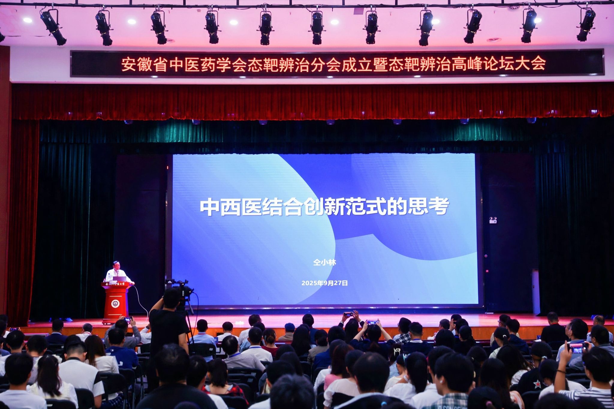 9月26-27日,安徽省中医药学会态靶辨治分会成立大会暨态靶辨治高峰论坛在合肥召开。中国中医科学院广安门医院代谢病研究所所长、中国中医科学院首席研究员、中国科学院院士、“态靶辨治”理论开创者仝小林院士出席并作专题报告。学校党委副书记、校长许钒出席大会并致辞。